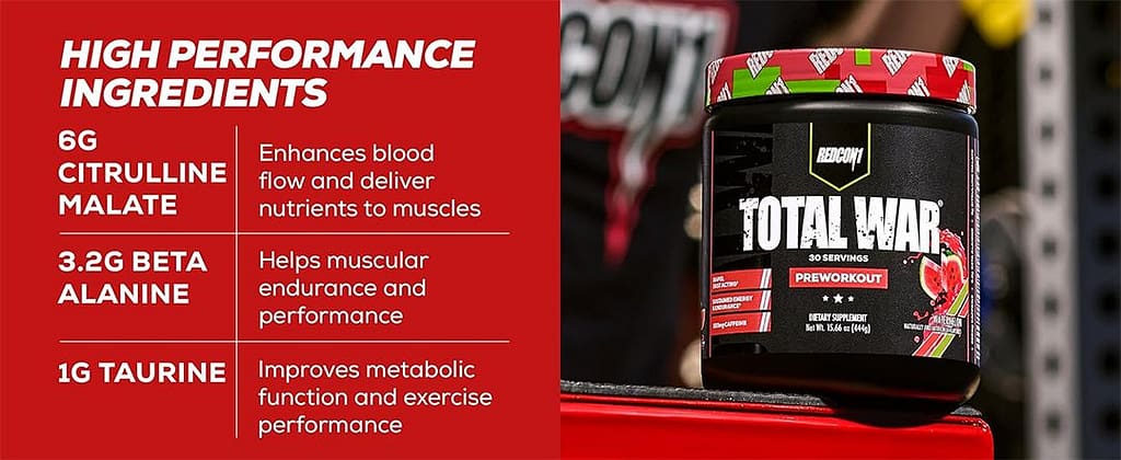 Given just how jam-packed this formula is, each serving of REDCON1 Total War yields a total of 14.7g. That’s practically double the standard serving size we see in other pre-workout supplements on the market. We would however expect this, as REDCON1 Total War markets itself as a ‘complete’ formula, and therefore contains efficacious dosages of ingredients which deliver energy, focus, endurance and muscle pumps.